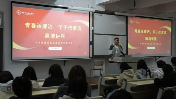 本次讲座由陈艾昕老师主讲。陈老师以生动而富有感染力的方式,从廉洁认知、行为规范和校园实际场景出发,深入阐释了廉洁文化的核心内涵,细致解析了廉洁在学业、实习及未来职场中的具体体现与实践要求,引导同学们明辨是非、坚守底线。他鼓励青年学子将清廉理念内化于心、外化于行,以实际行动传播青春正能量。