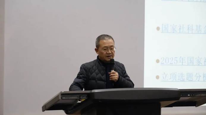 讲座伊始,廖云松围绕申报公告解读、申请材料准备、课题选题技巧、设计论证撰写等七大模块,系统讲解课题研究全流程。从如何挖掘有价值的选题,到如何严谨撰写研究论证,再到如何梳理研究基础与条件保障,为同学们的学术探索和课题申报扫清障碍,助力大家在科研领域迈出坚实步伐。